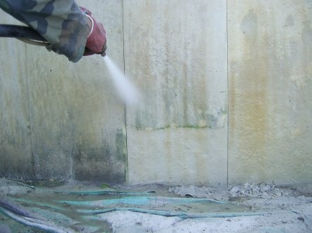 Czyszczenie muru cmentarnego na warszawskich Powązkach